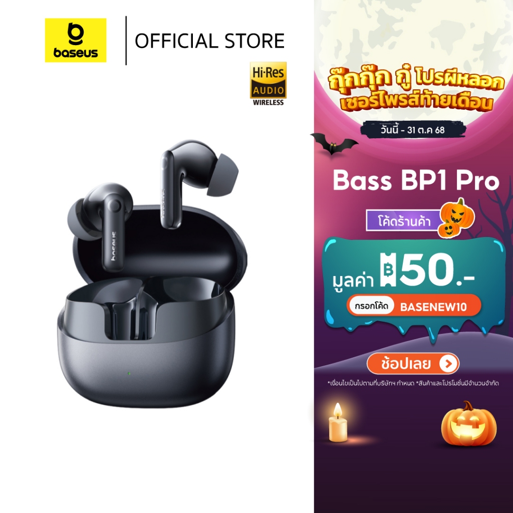 Baseus Bass BP1 Pro หูฟังไร้สายดีไซน์หรูเสียงเบสหนักแน่นตามชื่อรุ่น มาพร้อมไดรเวอร์ขนาด 13 มม. และเทคโนโลยี Bass Enhancement ให้เสียงทุ้มลึกสะใจโดยไม่กลบเสียงกลาง–แหลม รองรับ Bluetooth 5.3 เชื่อมต่อรวดเร็วและเสถียร มีระบบตัดเสียงรบกวน ENC สำหรับโทรศัพท์ แบตเตอรี่ใช้งานได้นานถึง 8 ชั่วโมงต่อการชาร์จ 1 ครั้ง และรวมเคสได้สูงสุด 30 ชั่วโมง เหมาะกับคนที่ชอบฟังเพลงแนว EDM หรือดูหนังเสียงแน่น ๆ