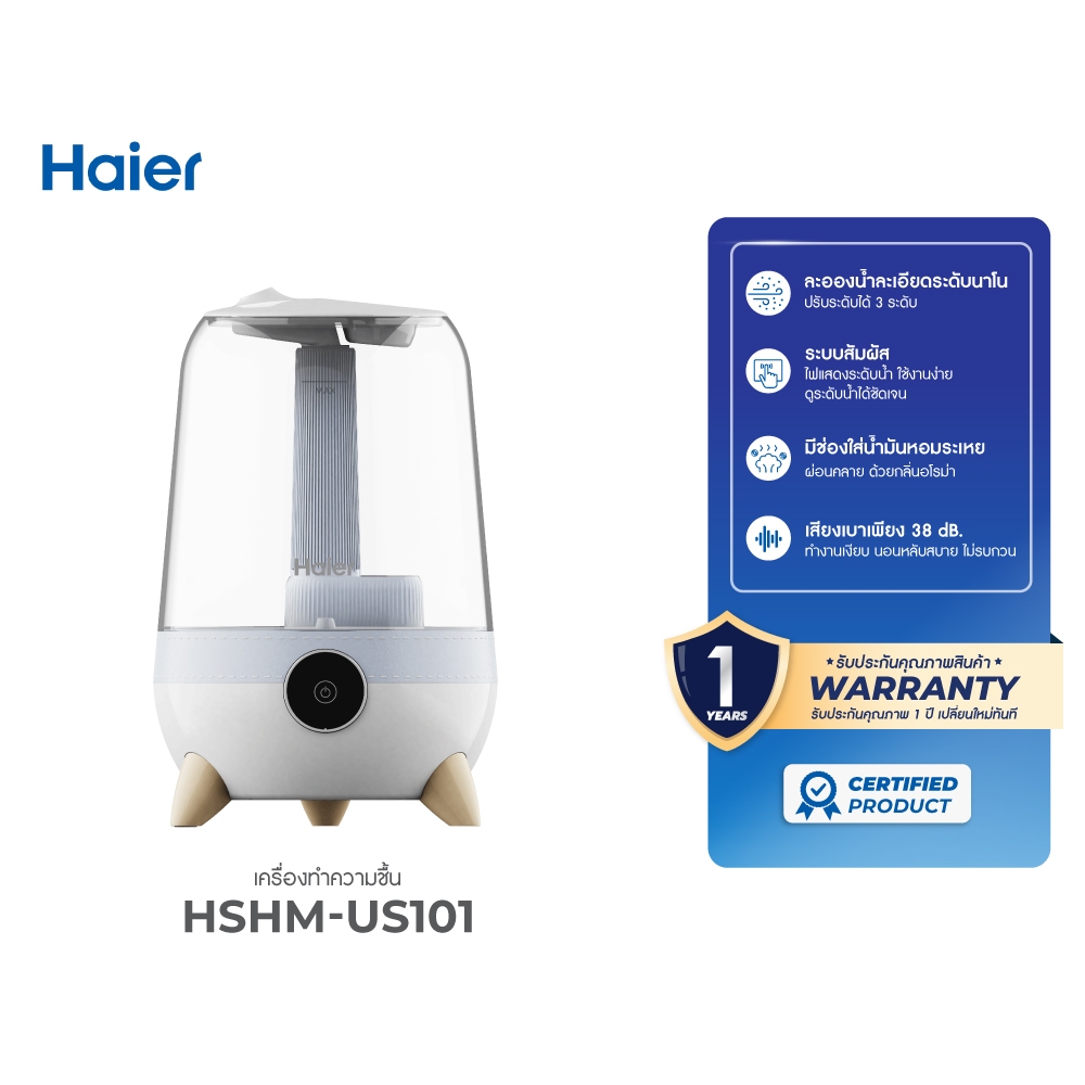 Haier Ultrasonic Humidifier รุ่น HSHM-US101 เครื่องเพิ่มความชื้นระบบอัลตราโซนิกจาก Haier ที่ช่วยเพิ่มความชื้นในอากาศอย่างนุ่มนวลและสม่ำเสมอ เหมาะกับห้องนอนหรือห้องปรับอากาศ ลดอาการคอแห้ง ผิวแห้ง และภูมิแพ้ เสียงเงียบขณะทำงาน ไม่รบกวนการนอน สามารถปรับระดับไอน้ำได้ตามต้องการ ตัวเครื่องดีไซน์เรียบ ใช้งานง่าย และประหยัดพลังงาน เหมาะกับการใช้งานในชีวิตประจำวัน