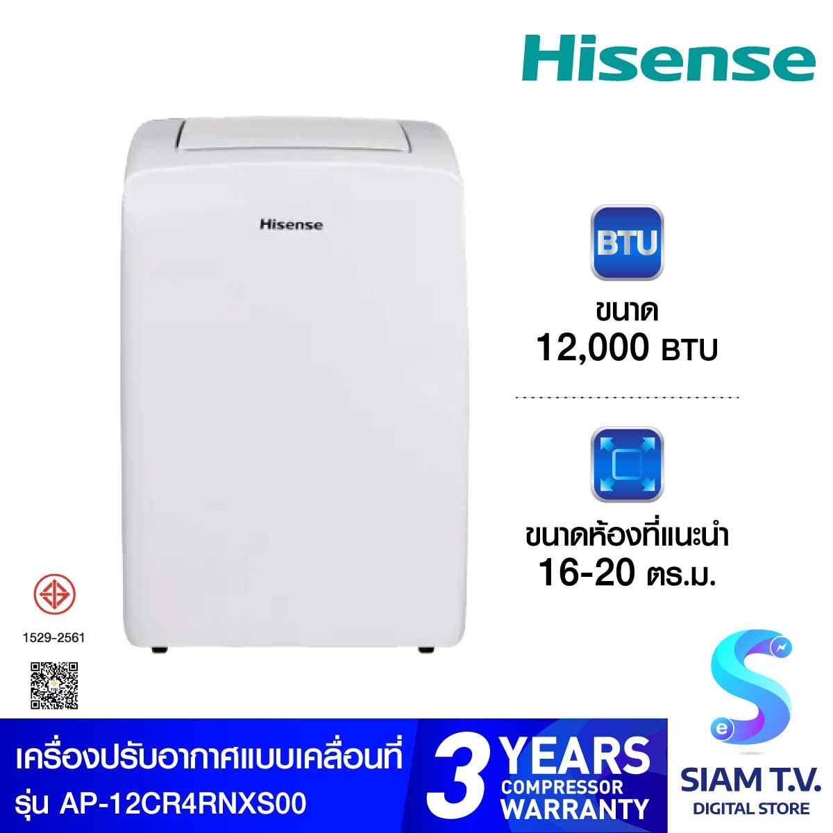 Hisense แอร์เคลื่อนที่ Portable Air Conditioner รุ่น AP-12CR4RNXS00 ขนาด 12000 BTU แอร์เคลื่อนที่รุ่นยอดนิยมที่ให้กำลังทำความเย็น 12,000 BTU เหมาะสำหรับห้องขนาดเล็ก-กลาง ติดตั้งง่ายเพียงต่อท่อระบายอากาศออกหน้าต่าง เคลื่อนย้ายสะดวกด้วยล้อเลื่อน ใช้งานง่ายผ่านหน้าจอ LED และรีโมตคอนโทรล มีโหมดลดความชื้น (Dehumidify) และโหมดตั้งเวลาอัตโนมัติ ทำงานเงียบในระดับที่เหมาะสม เหมาะกับคอนโดหรือห้องเช่าที่ไม่สะดวกติดตั้งถาวร