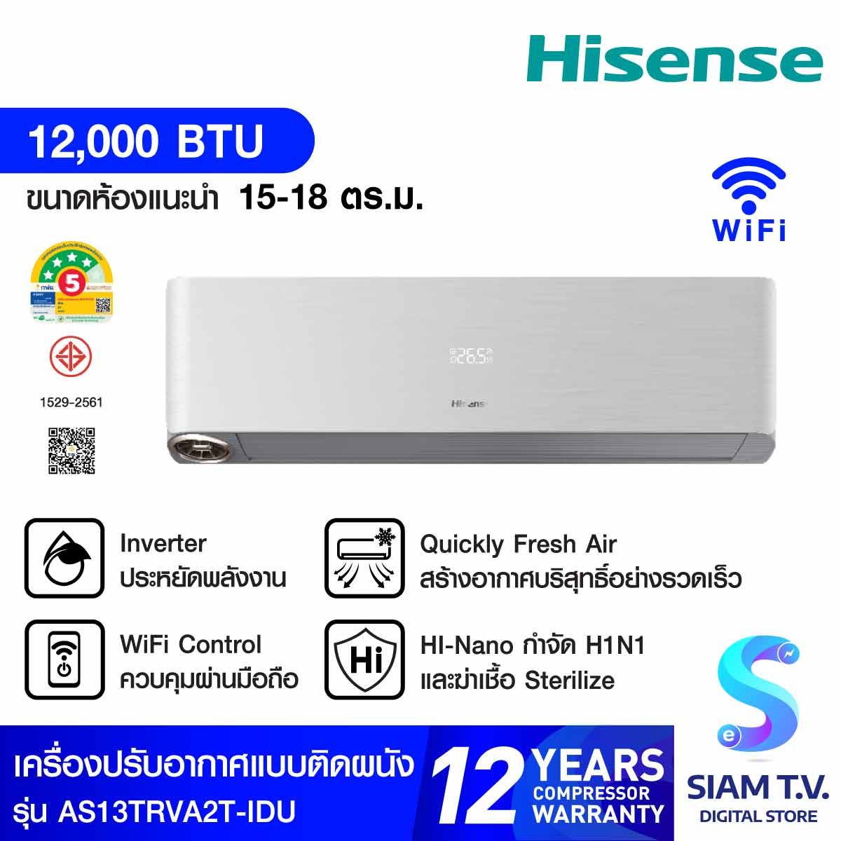 ทุกเครื่องการันตีฉลาก ประหยัดไฟเบอร์ 5 และฟีเจอร์ Auto Restart, Sleep Mode, และระบบป้องกันไฟตกที่เหมาะกับการใช้งานในไทย ดีไซน์ก็บางเฉียบ มินิมอล เข้ากับบ้านสมัยใหม่ ราคาหมื่นต้น ๆ แต่ได้ฟังก์ชันครบเกินคุ้ม ใครที่อยากได้แอร์ประสิทธิภาพสูงในราคาที่ไม่แรงเกินไป Hisense คือคำตอบของปีนี้
