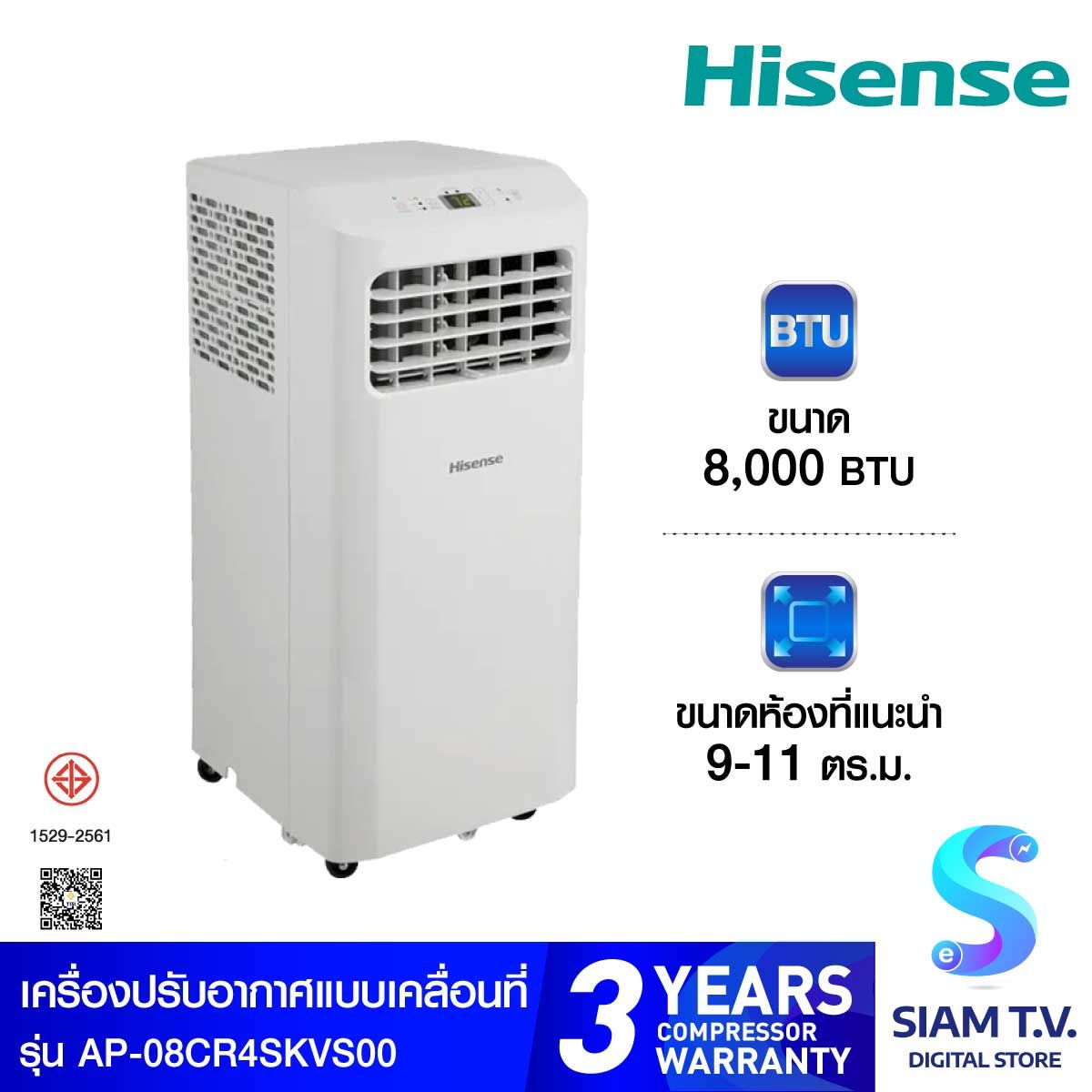 Hisense แอร์เคลื่อนที่ รุ่น AP-08CR4SKVS00 ขนาด 8000 BTU แอร์พกพาขนาดเล็กกำลัง 8,000 BTU เหมาะสำหรับห้องนอนหรือห้องทำงานส่วนตัว ติดตั้งง่ายไม่ต้องเจาะผนัง มีโหมดปรับอุณหภูมิและลดความชื้นในตัว ใช้งานสะดวกด้วยปุ่มกดและรีโมตคอนโทรล ขนาดกะทัดรัด น้ำหนักไม่มาก เคลื่อนย้ายง่าย ใช้ไฟฟ้าน้อย ประหยัดพลังงาน เหมาะกับผู้ที่ต้องการความเย็นเฉพาะพื้นที่