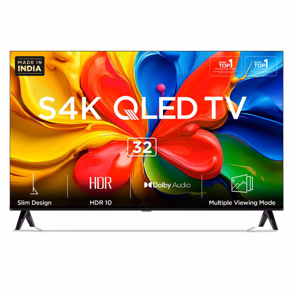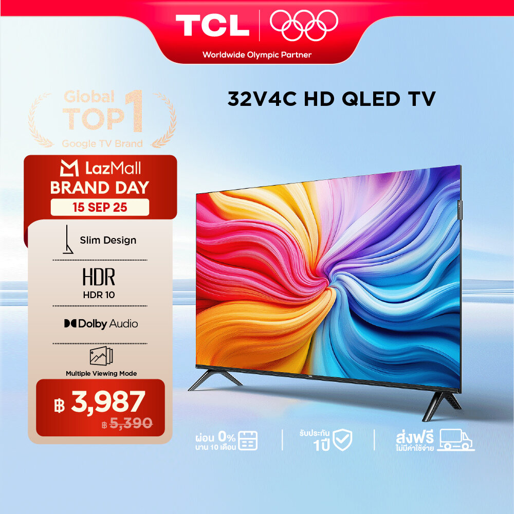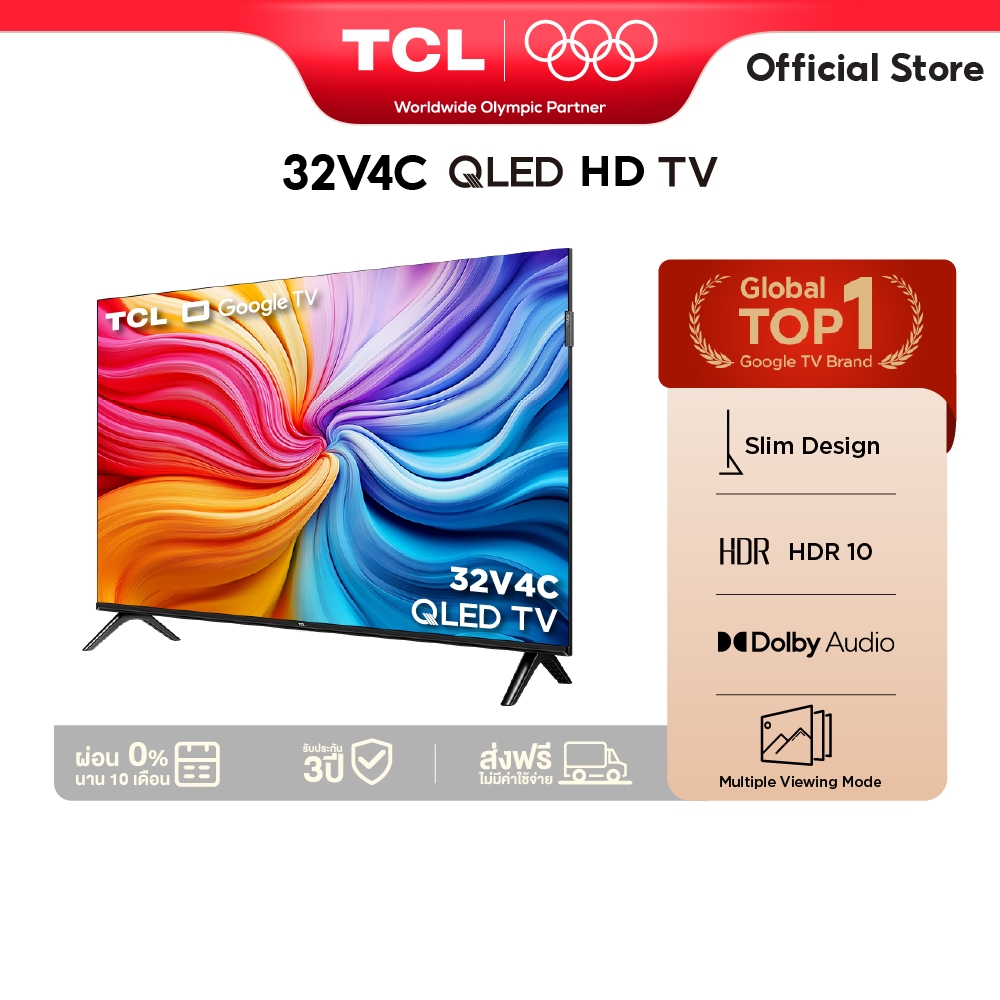 TCL ทีวี 32 นิ้ว HD QLED Google TV รุ่น 32V4C ทีวี QLED ขนาดเล็กสุดของซีรีส์นี้ หน้าจอ 32 นิ้ว ความละเอียด HD แต่ได้ความสดใสของสีที่ดีกว่า LED ทั่วไป ระบบ Google TV ใช้งานได้ครบทั้ง YouTube, Netflix และแอปอื่น ๆ มีฟังก์ชันสั่งงานด้วยเสียงผ่าน Google Assistant ดีไซน์กะทัดรัด เหมาะกับห้องเล็กหรือใช้เป็นทีวีเครื่องที่สอง คุณภาพเกินตัวสำหรับไซซ์เล็ก