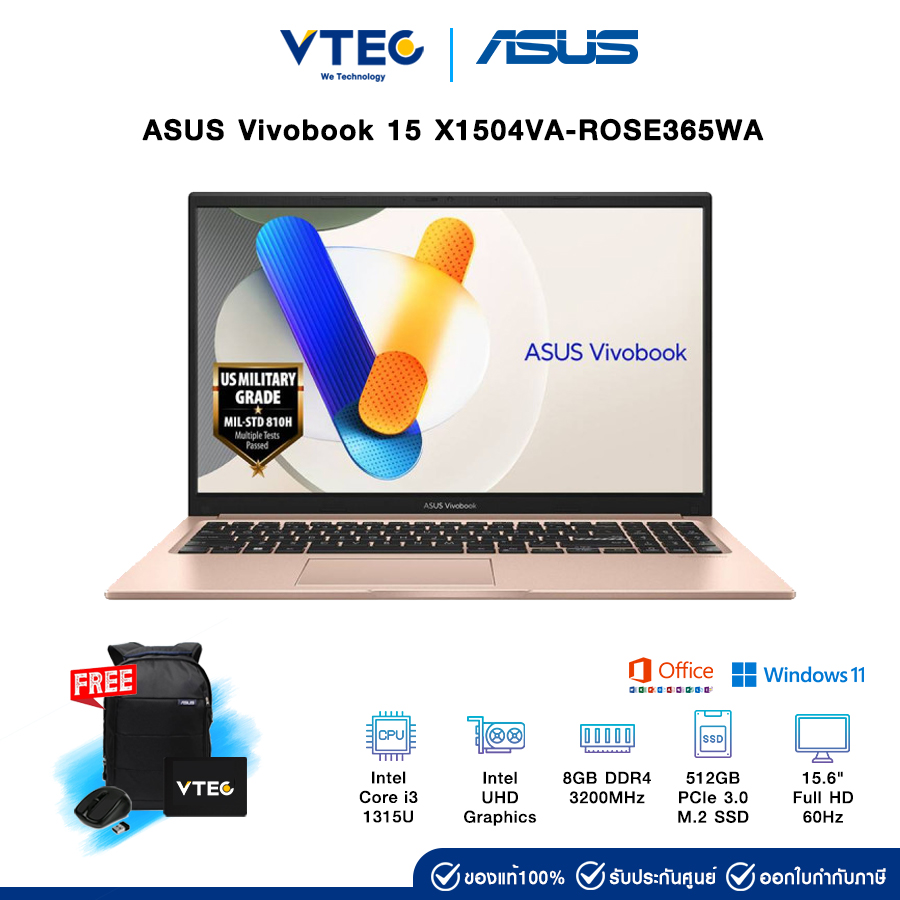 ASUS VIVOBOOK 15 X1504VA-ROSE365WA โน้ตบุ๊กสายเรียนและทำงานทั่วไป หน้าจอ 15.6 นิ้ว FHD ใช้ซีพียู Intel Core i3-1315U ที่ตอบโจทย์งานพื้นฐาน เช่น เอกสาร การเรียนออนไลน์ และความบันเทิงเบื้องต้น ดีไซน์บางเบา ขอบจอบาง น้ำหนักไม่มาก พกพาสะดวก แบตเตอรี่ใช้งานได้หลายชั่วโมงต่อการชาร์จ เหมาะกับนักเรียน นักศึกษา หรือผู้ที่ต้องการโน้ตบุ๊กราคาเข้าถึงง่าย