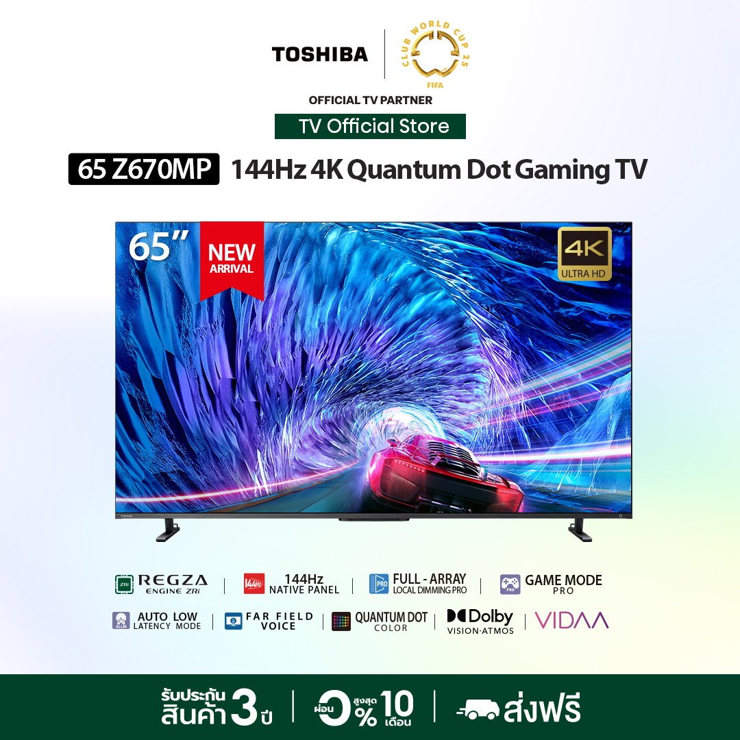 Toshiba 65Z670MP สมาร์ททีวี 4K UHD ซีรีส์เรือธง ภาพสวยเต็มตาด้วย REGZA Engine ZRi และ Full Array Local Dimming Pro รองรับ Dolby Vision IQ และ HDR10+ Adaptive พร้อมเสียง REGZA Power Audio Extreme และ Dolby Atmos สมบูรณ์ทั้งภาพและเสียง เหมาะสำหรับคนที่ต้องการทีวีครบทุกฟังก์ชัน ทั้งดูหนัง เล่นเกม เสียงกระหึ่ม ดีไซน์หรู ราคาน่าจับต้อง