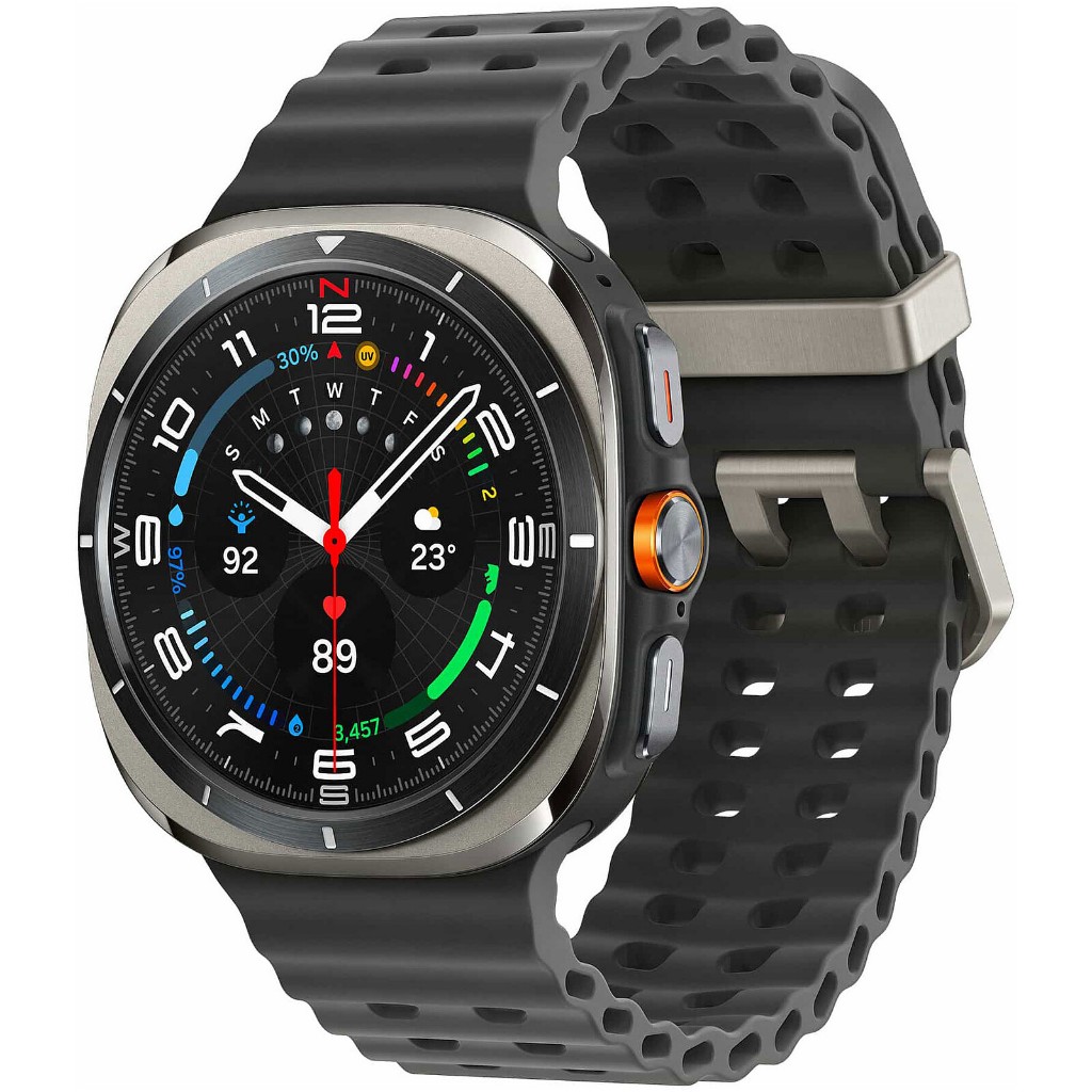 Samsung Galaxy Watch Ultra รุ่นเรือธงสายลุย ดีไซน์แข็งแกร่งระดับ Military Grade พร้อมกันน้ำลึกถึง 100 เมตร ใช้จอแสดงผล Super AMOLED ที่สว่างถึง 3,000 นิต มองเห็นชัดกลางแดด แบตเตอรี่ใช้งานได้นานสูงสุด 100 ชั่วโมง มาพร้อมโหมด Adventure, GPS แม่นยำ และเซนเซอร์สุขภาพเต็มรูปแบบ เหมาะสำหรับสายแอดเวนเจอร์ นักวิ่ง นักปั่น และผู้ที่ต้องการสมาร์ทวอชทนทานระดับโปร